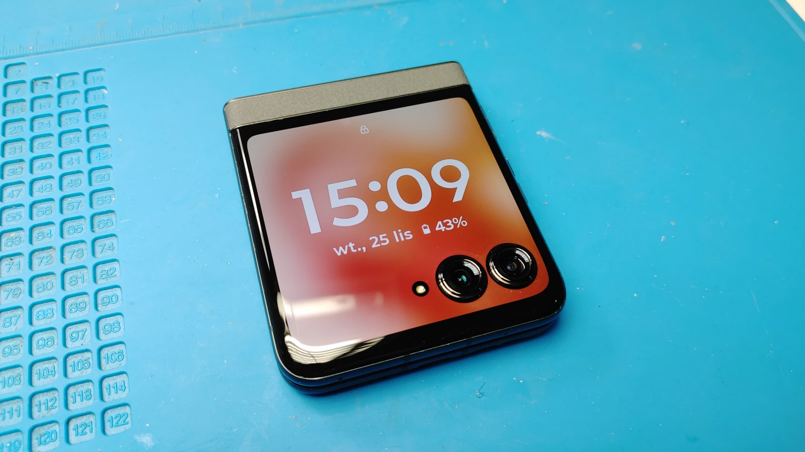 Wymiana zewnętrznego wyświetlacza w Motorola RAZR 50. Wszystko przebiegło tak jak należy i telefon znów wygląda jak nowy.